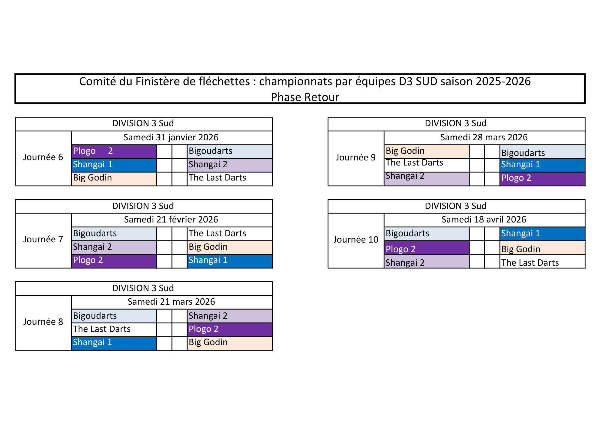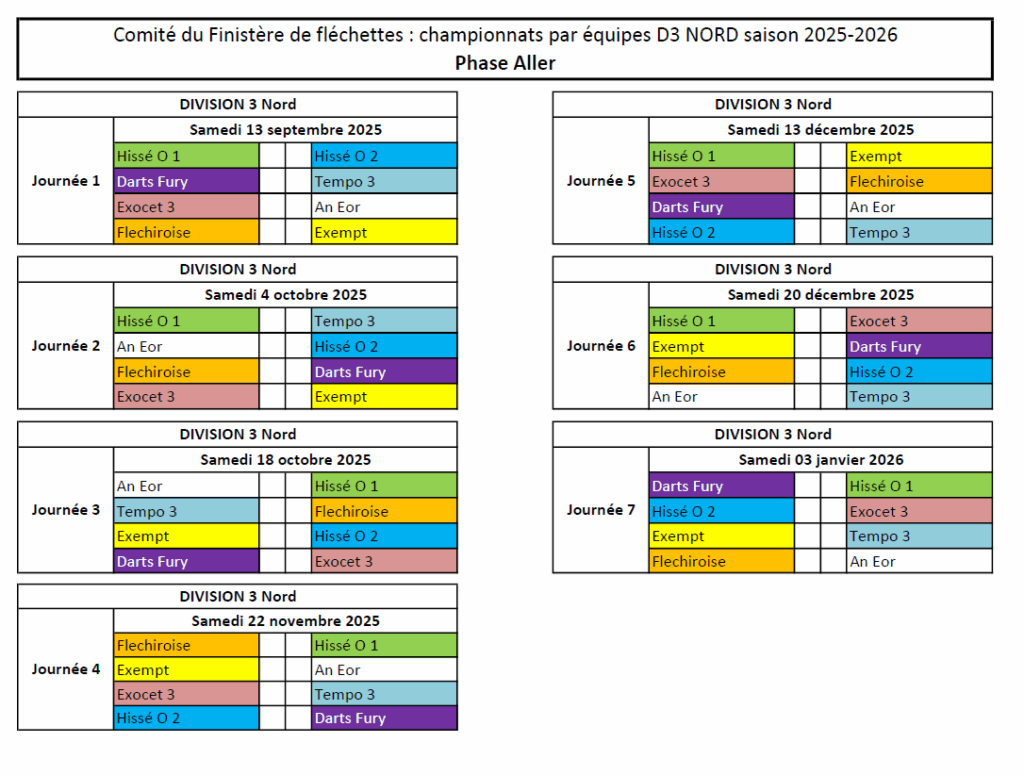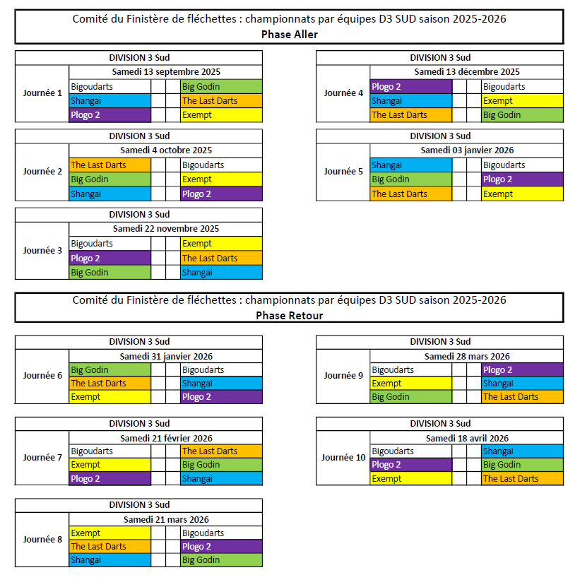 Calendrier par Division