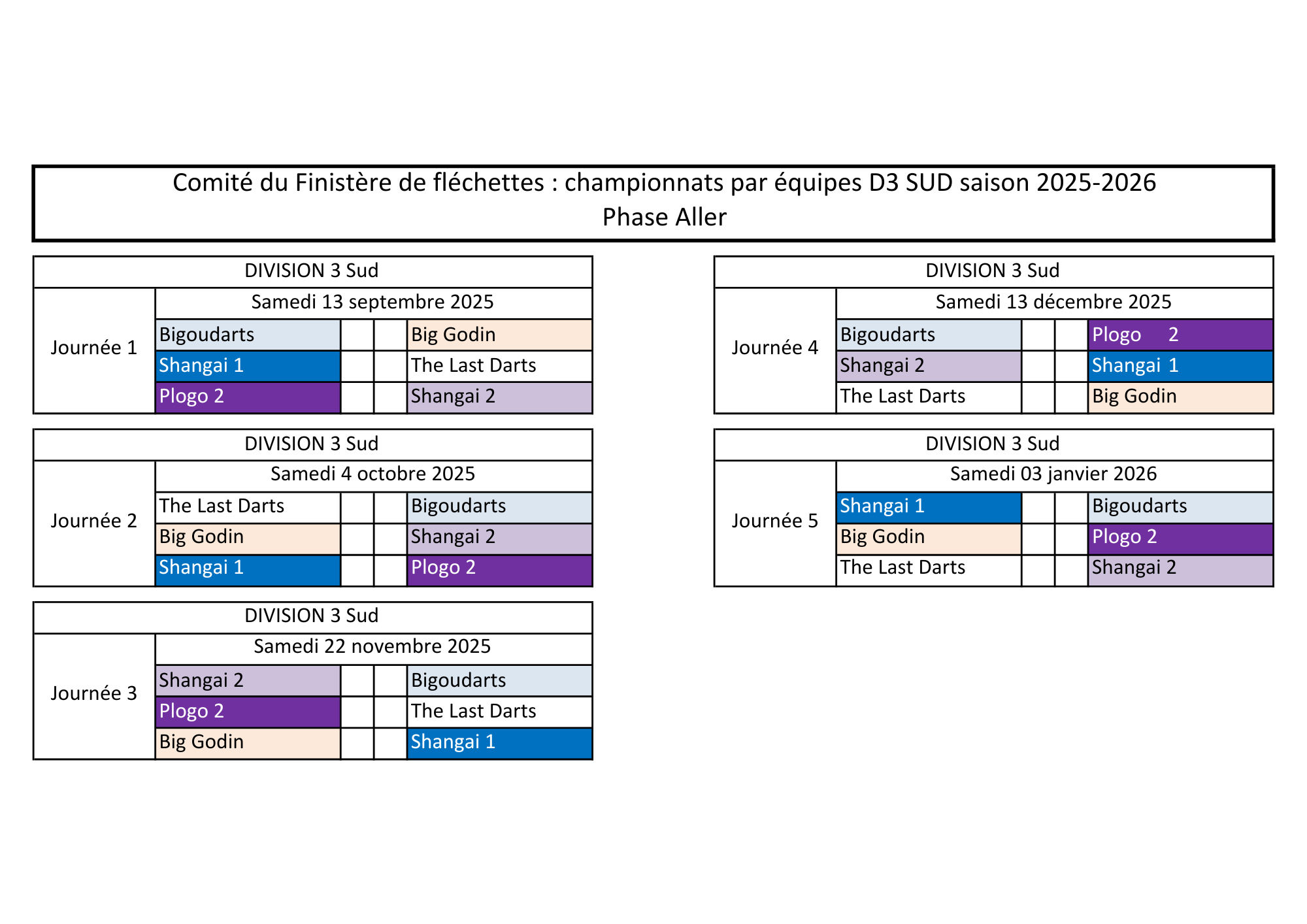 Comité 29 de Fléchettes traditionnelles